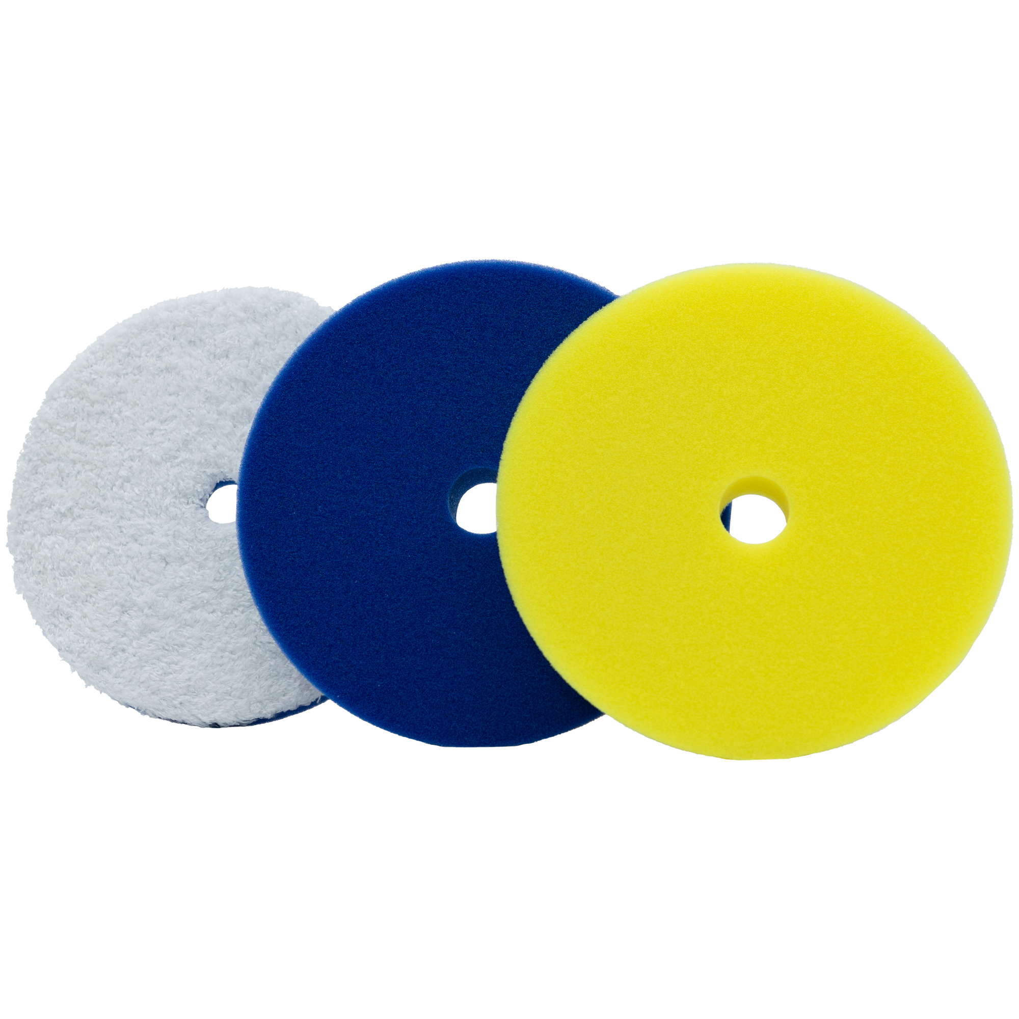 The Proje 3 Pad Kit is specially designed to rapidly remove severe defects, sanding marks, scratches on fully cured or harder paint systems, and flat solid surfaces. The density and lateral stability of the foam interface, coupled with the specialized microfiber material, means fast cutting and polishing for dual-action random orbital and gear-driven orbital tools.