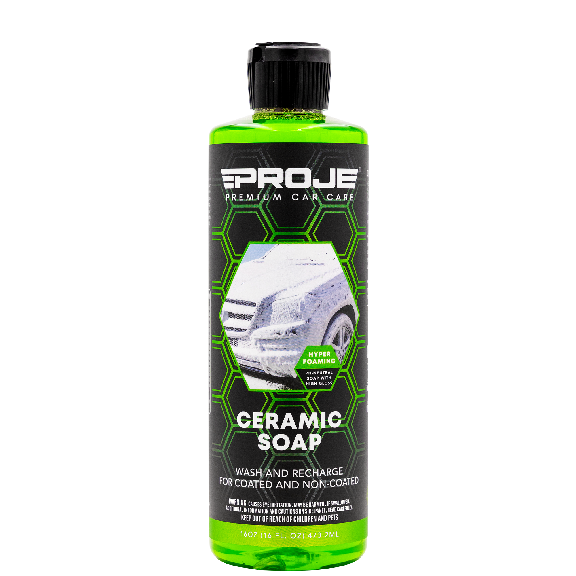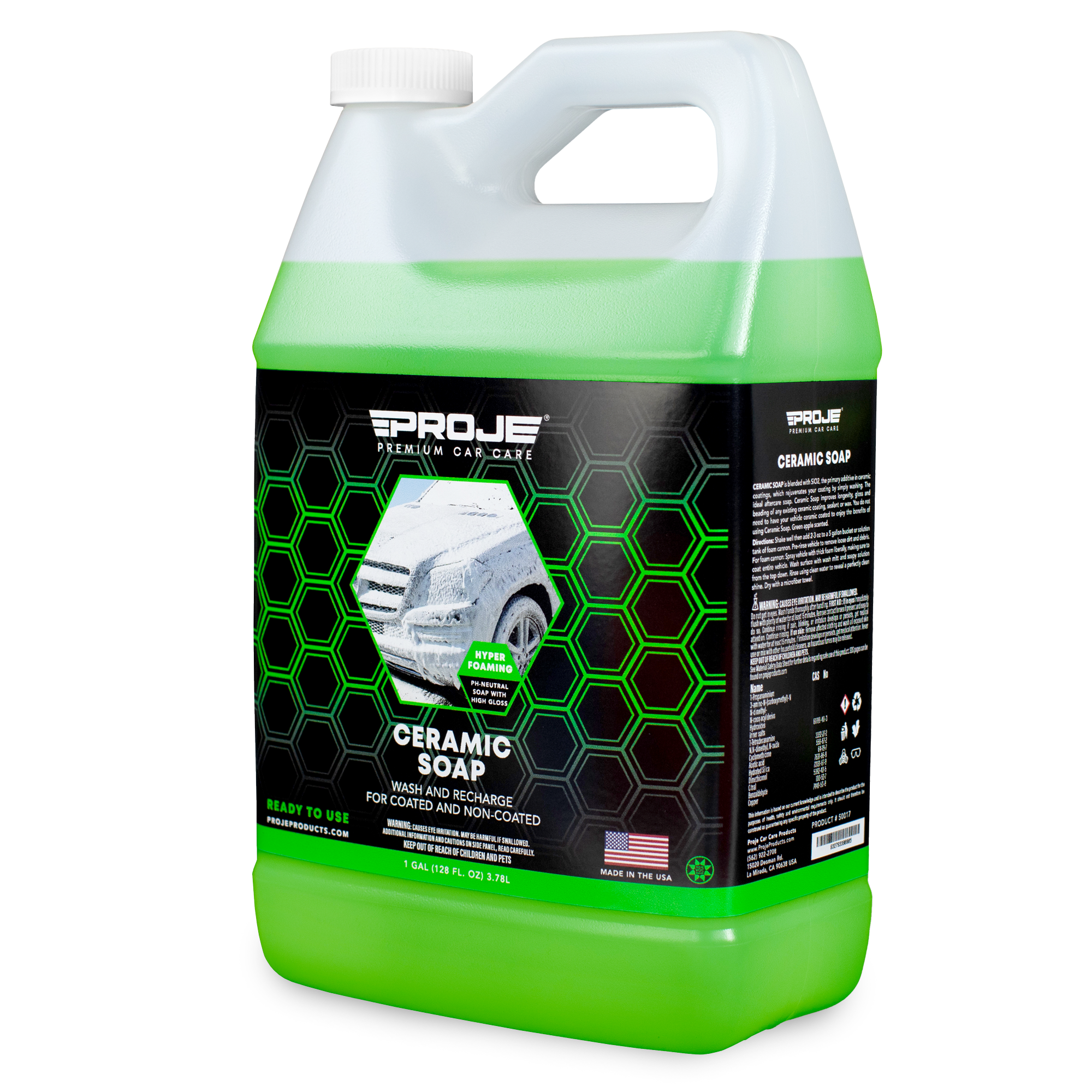 Proje has formulated the perfect Ceramic Soap for your automotive vehicle that offers an unbeatable level of protection against harsh elements that can damage your car. Shield your car from harmful UVA/UVB rays, water spots, weather erosion, and more. The ceramic car shampoo is expertly formulated with nano SiO2 to enhance protection from contaminants, leaving behind a hydrophobic layer of ceramic protection that results in an incredible mirror gloss shine. Perfect to maintain and rejuvenate your existing ceramic coating.