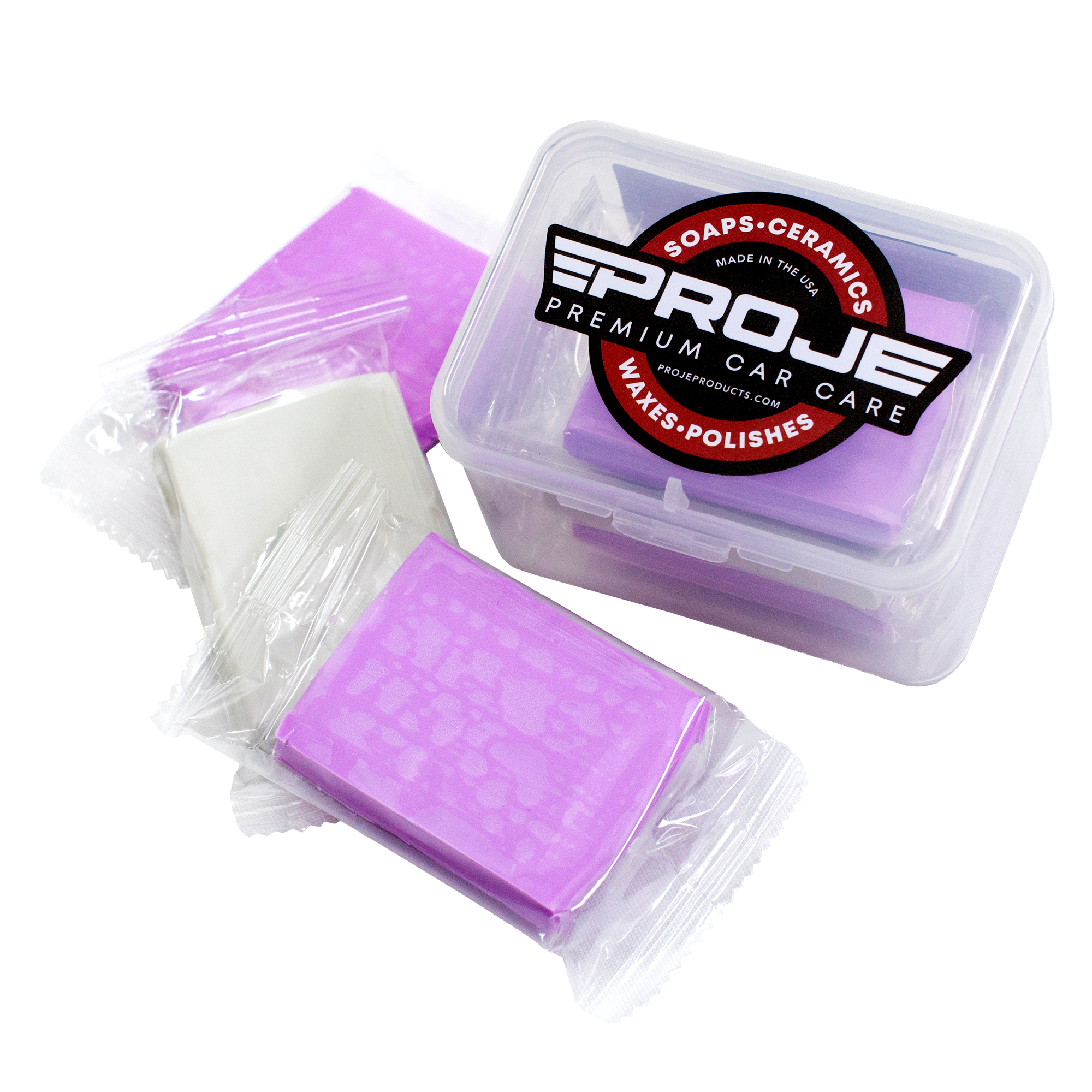 Proje’s 3 piece clay bars will leave your car with a smooth and silky finish. The super sticky heavy clay (purple) and fine clay (white) are soft yet durable making them perfect for picking up finer embedded particles on your vehicle's finish. The pliable clay will fit in the smaller, hard-to-reach areas and allow the clay to conform to the surface that needs to be prepped for polishing!