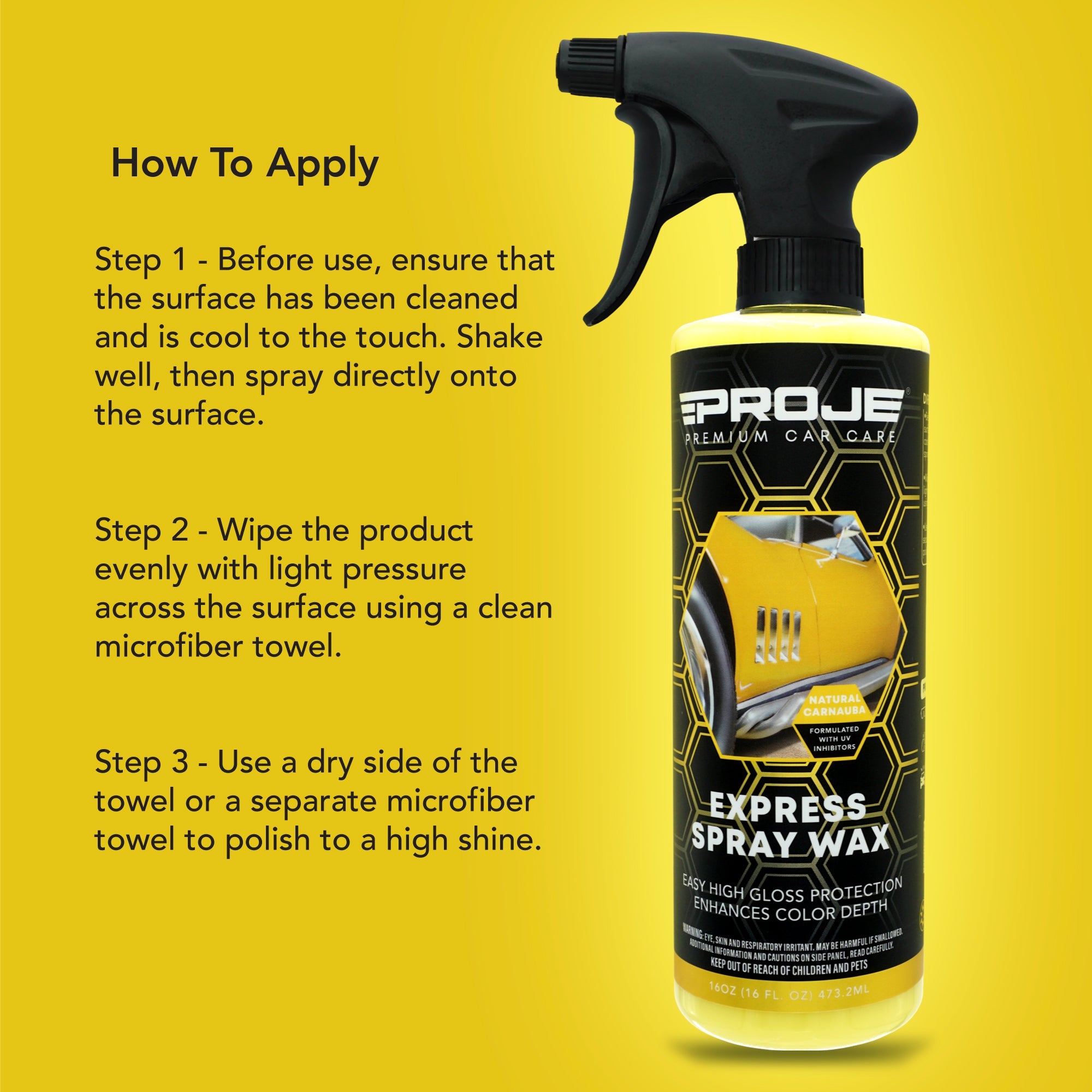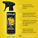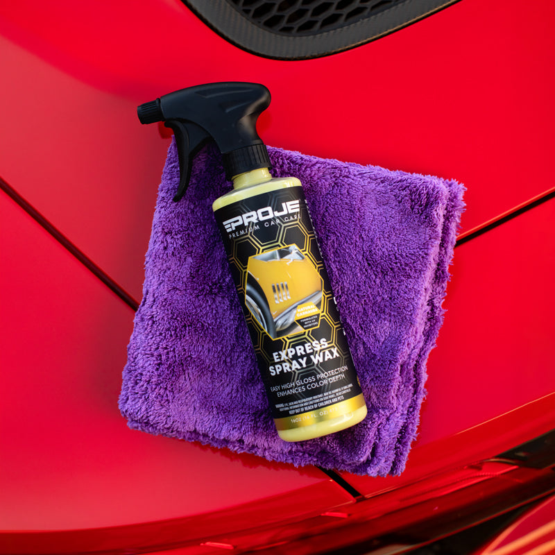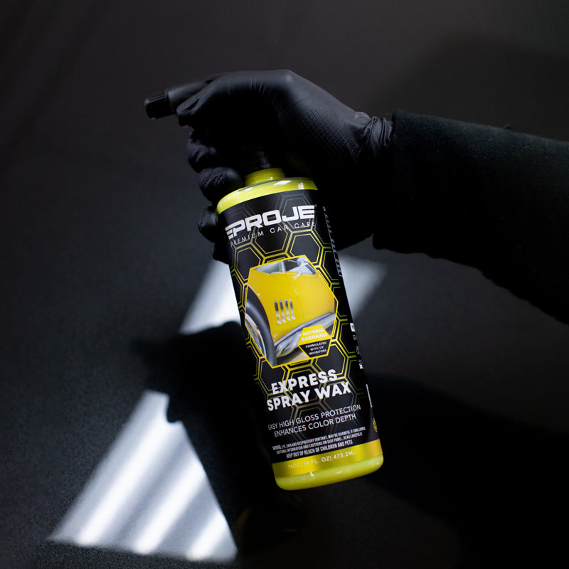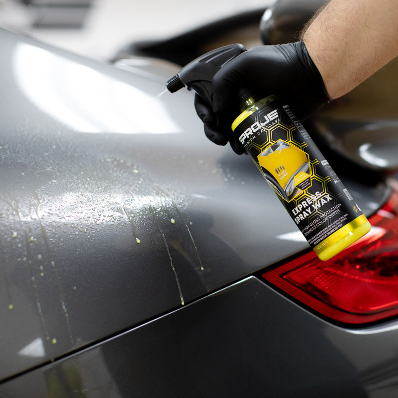 Experience the ultimate in vehicle care with our Express Spray Wax, crafted from grade A carnauba wax to level imperfections and provide exceptional protection against the elements, ensuring a remarkable depth of shine and a mirror-like finish. Designed for lasting durability, this wax bonds to your vehicle's surface, creating a water-repellent seal that withstands multiple hand washes and heavy showers. Its advanced formula not only protects but also enhances your vehicle's paint, reflecting more light for a deeper, richer shine, making it perfect for a final touch-up after detailing or a quick shine before a show. Enjoy a streak and residue-free application that leaves no smears or flaky residue on plastic or rubber surfaces. Work in a Shaded Area - Park your vehicle in a shaded area ensuring the exterior surface is clean and cool to the touch.