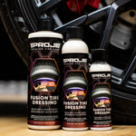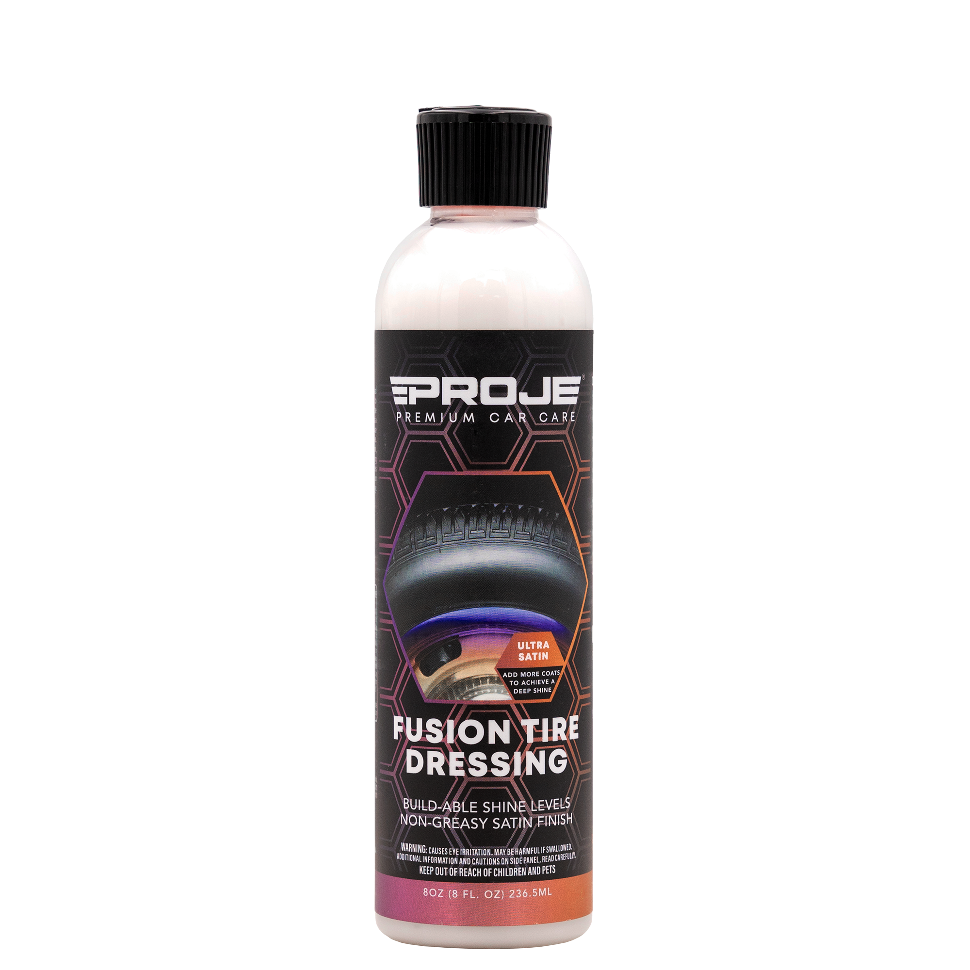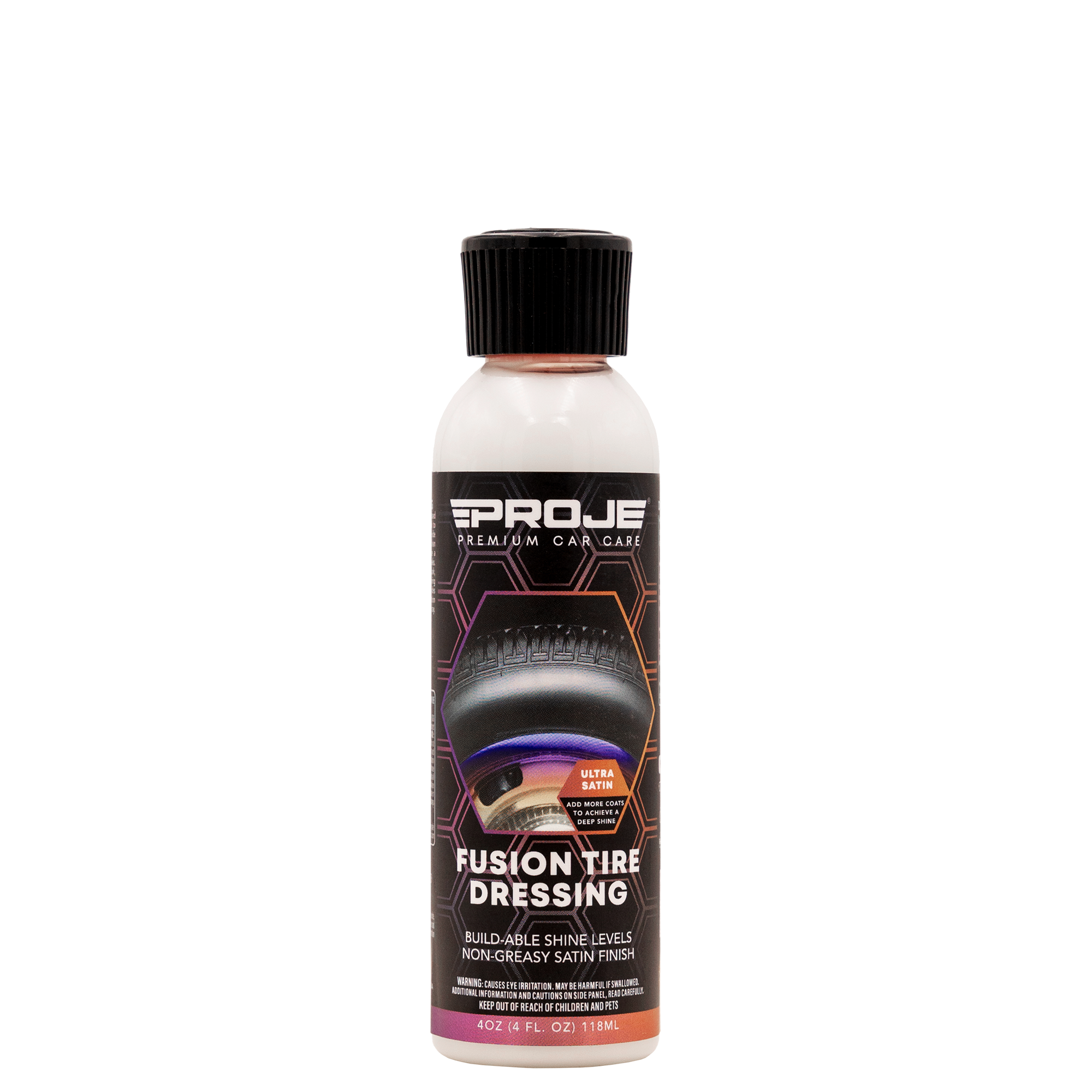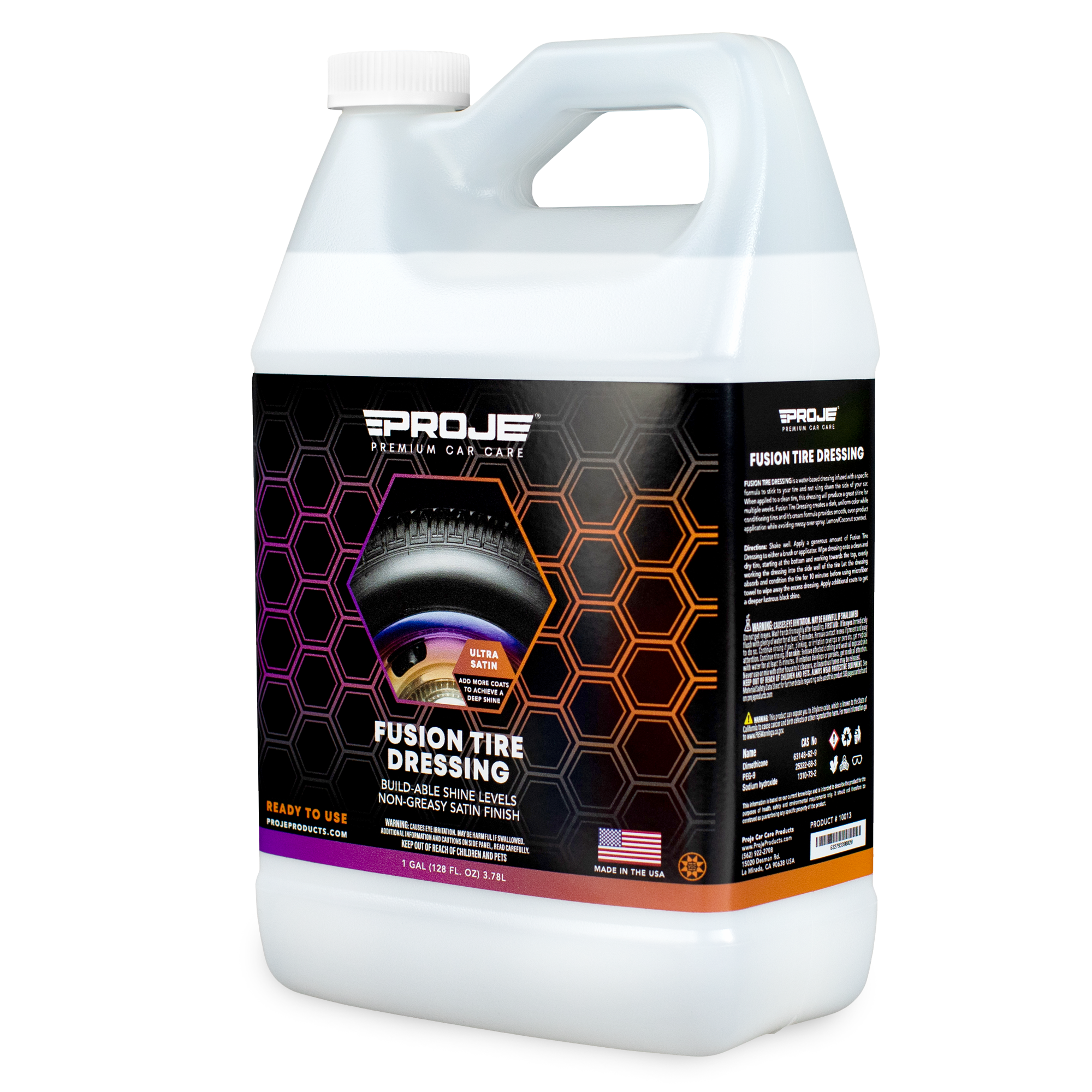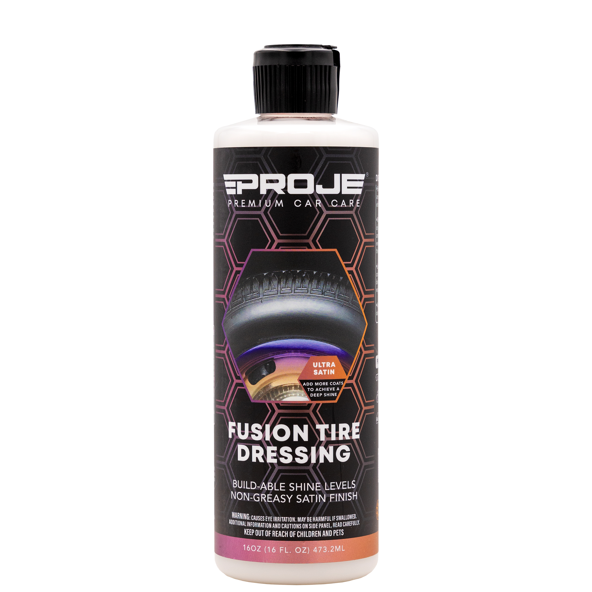 The Fusion Tire Dressing is a water-based formula infused with advanced agents that stick to your tires, plastics, and vinyl, ensuring no sling down the side of your car. When applied to clean tire and plastic surfaces, the dressing will produce an excellent long-lasting satin finish with buildable shine levels when layered onto the applied surface. Enjoy a deep, rich satin finish or a high glossy shine with multiple layers on your tires and plastics. Restore the area back to its original appearance with this tire dressing, while also protecting against UV damage and dirt buildup. Experience the perfect blend of durability and aesthetics, giving your vehicle a polished look that lasts. Elevate your car care routine and make every drive a statement with Fusion Tire Dressing!Clean the tires - Before applying the Fusion Tire Dressing, ensure the tires are washed, decontaminated, and completely dry.