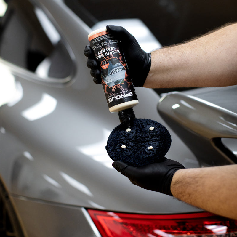 The Hybrid Wax Sealant is a premium liquid carnauba wax that bonds to the surface creating a strong protective barrier that provides an excellent deep rich shine and water resistance. The easy-to-use formula fills minor imperfections as you wax, creating a smooth layer of protection sealing your newly polished exterior from contamination like brake dust, bird dropping, water, tree sap, and pollution. Provides easier cleaning as dirt & grime is less likely to adhere to your surfaces. Shields your car from UV rays, prevent fading and discoloration – all for up to 6 months. Resistant to hot or cold temperatures.