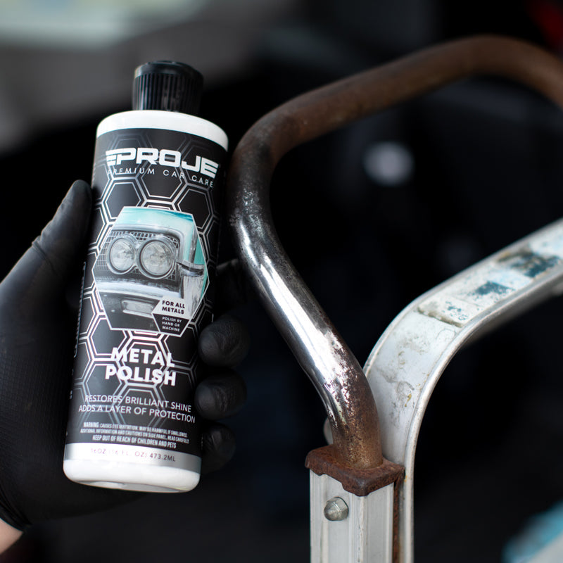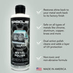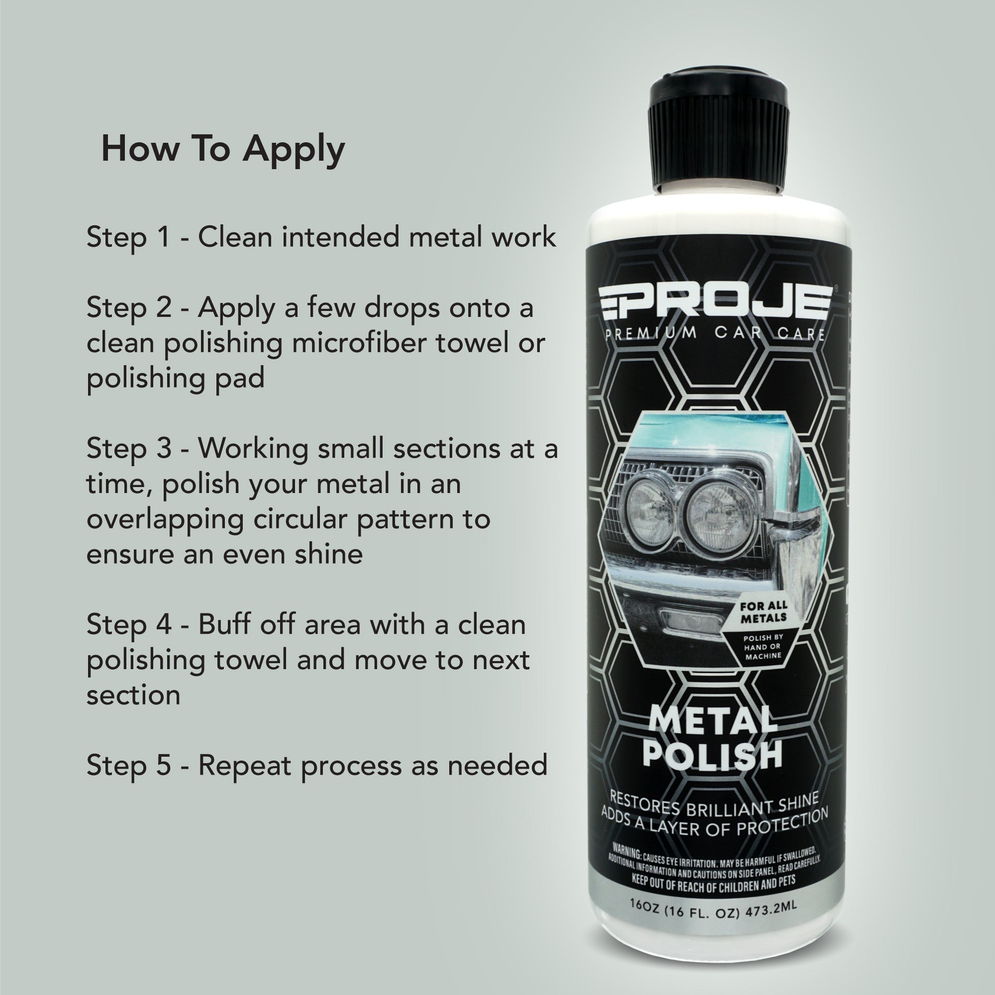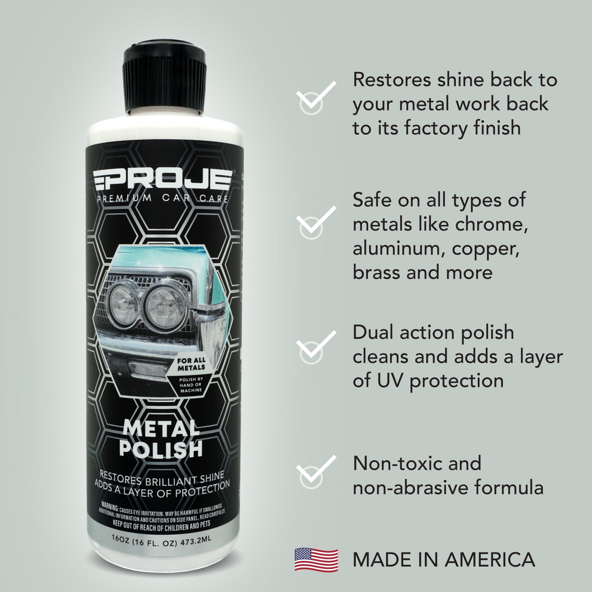 SAFE ON ALL METAL SURFACES - The Proje Metal Polish is the perfect solution to achieve a high gloss finish for your automotive accessories, household items, and much more! Safe to use on stainless steel, aluminum, brass, chrome, and more. Perfect for household, automotive, marine, motorcycle, and RV metalwork!
