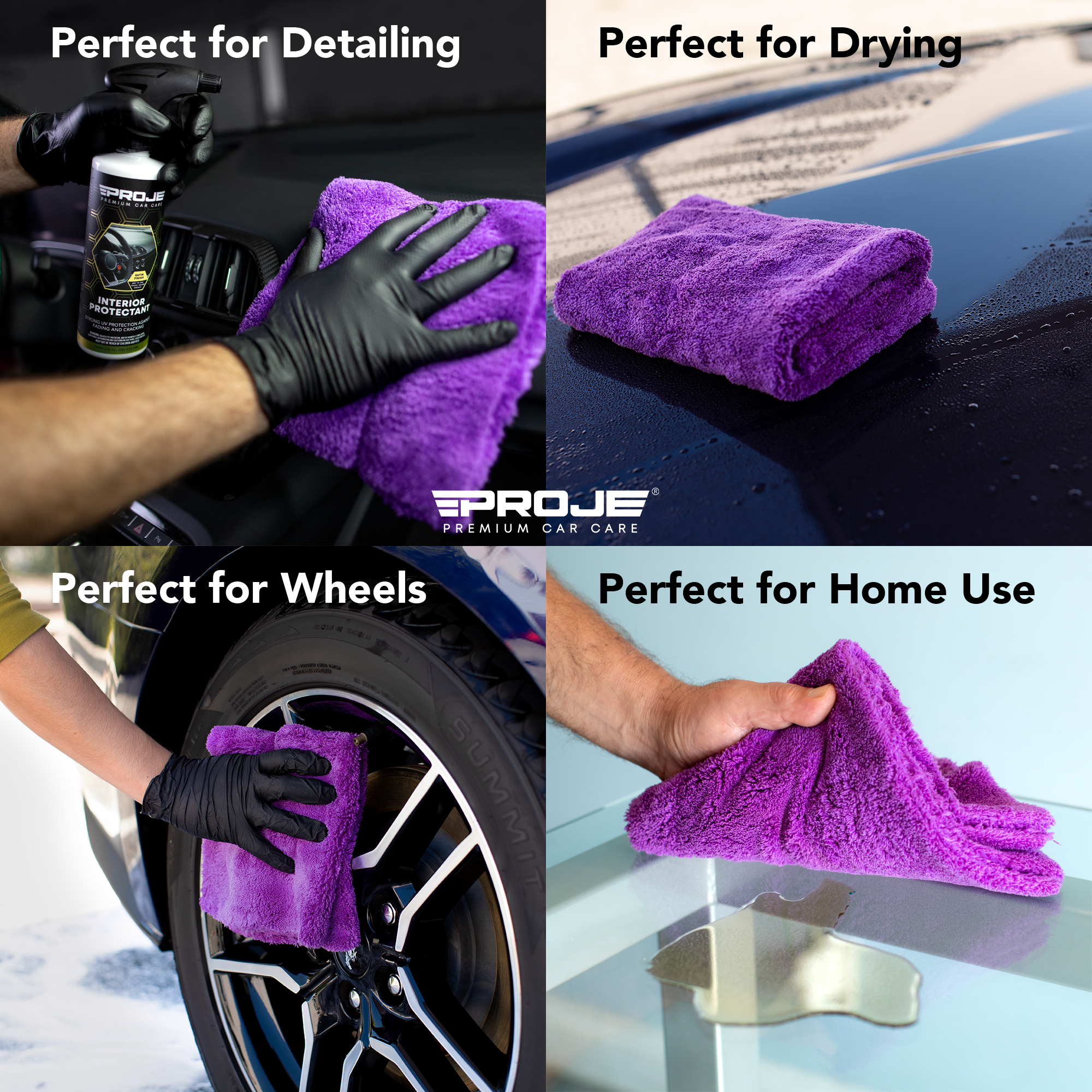 MULTIPURPOSE DETAILING TOWELS - Perfect cloth to use as car wash towels, window glass cleaning towels, car drying towel, auto polishing buffing towel, finishing towel and interior detailing towel! Use with Proje detailing sprays and waxes for waterless washing, quick detailing, compound, sealant, glaze and wax removal