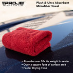 Proje’s professional grade plush microfiber towels are edgeless, tagless, and rated at a premium 500 GSM (Grams Per Square Meter). The ultra-soft and long pile non-abrasive microfiber cloths are great for cleaning windows, glass, mirrors, chrome, and screen. The super absorbent, thick, heavy-duty, durable, and scratch-free material quickly and easily removes the residues of detailing sprays, waxes, compounds, and sealants. Magically lifts dust, dirt, and grime without leaving streak marks when using a Proje quick detailer. Recommend washing separately on delicate and tumble dry low or air dry. Multiple colors available.