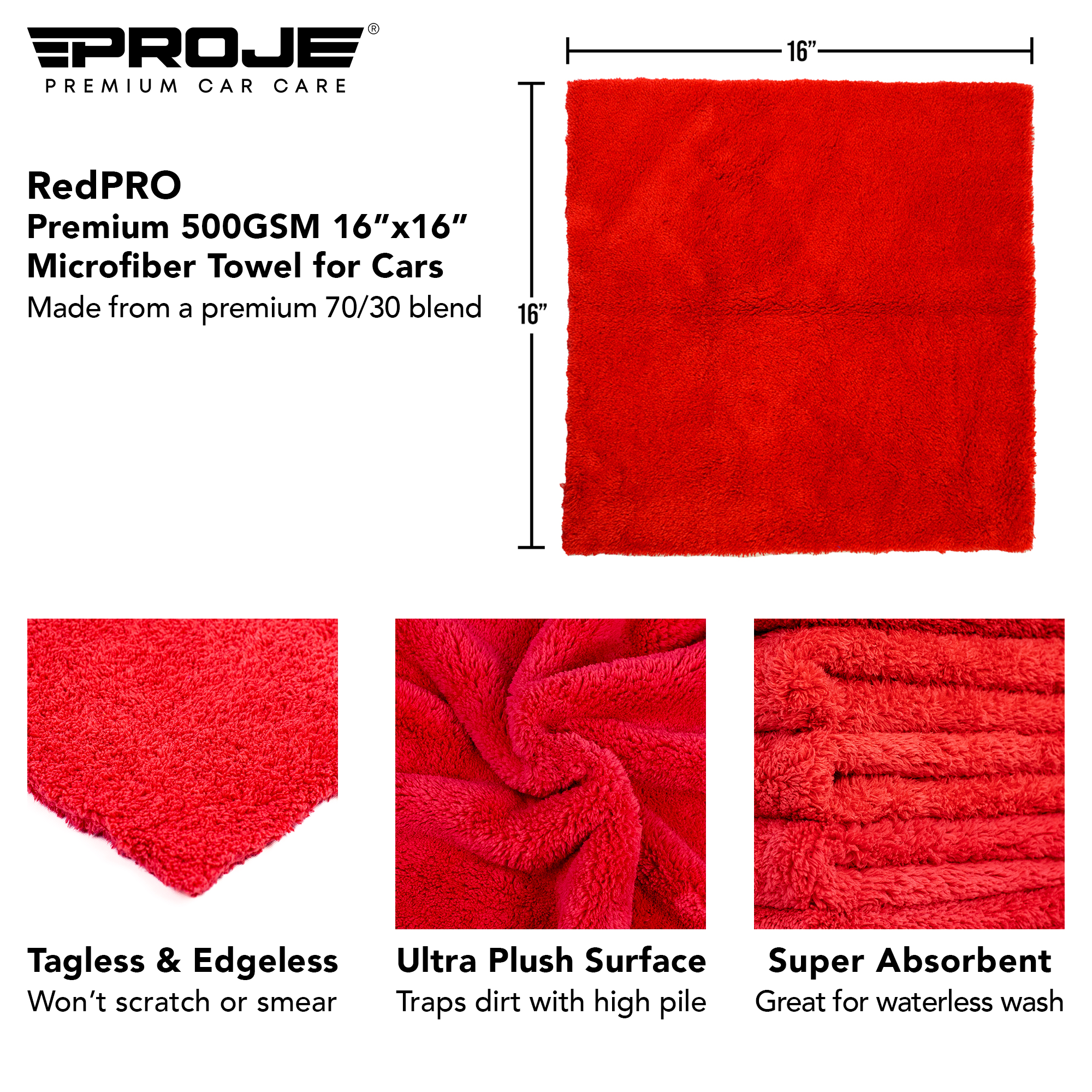 MULTIPURPOSE DETAILING TOWELS - Perfect cloth to use as car wash towels, window glass cleaning towels, car drying towel, auto polishing buffing towel, finishing towel and interior detailing towel! Use with Proje detailing sprays and waxes for waterless washing, quick detailing, compound, sealant, glaze and wax removal