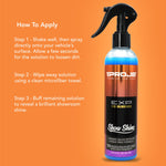 SIO2 INFUSED POLYMERS BOOSTS EXISTING CERAMIC COATINGS - With a high SiO2 concentration the Shoe Shine helps rejuvenate existing ceramic coatings by filling in imperfections on existing ceramic coatings, waxes, or sealants.