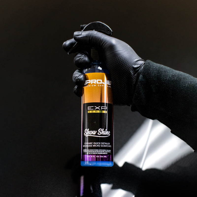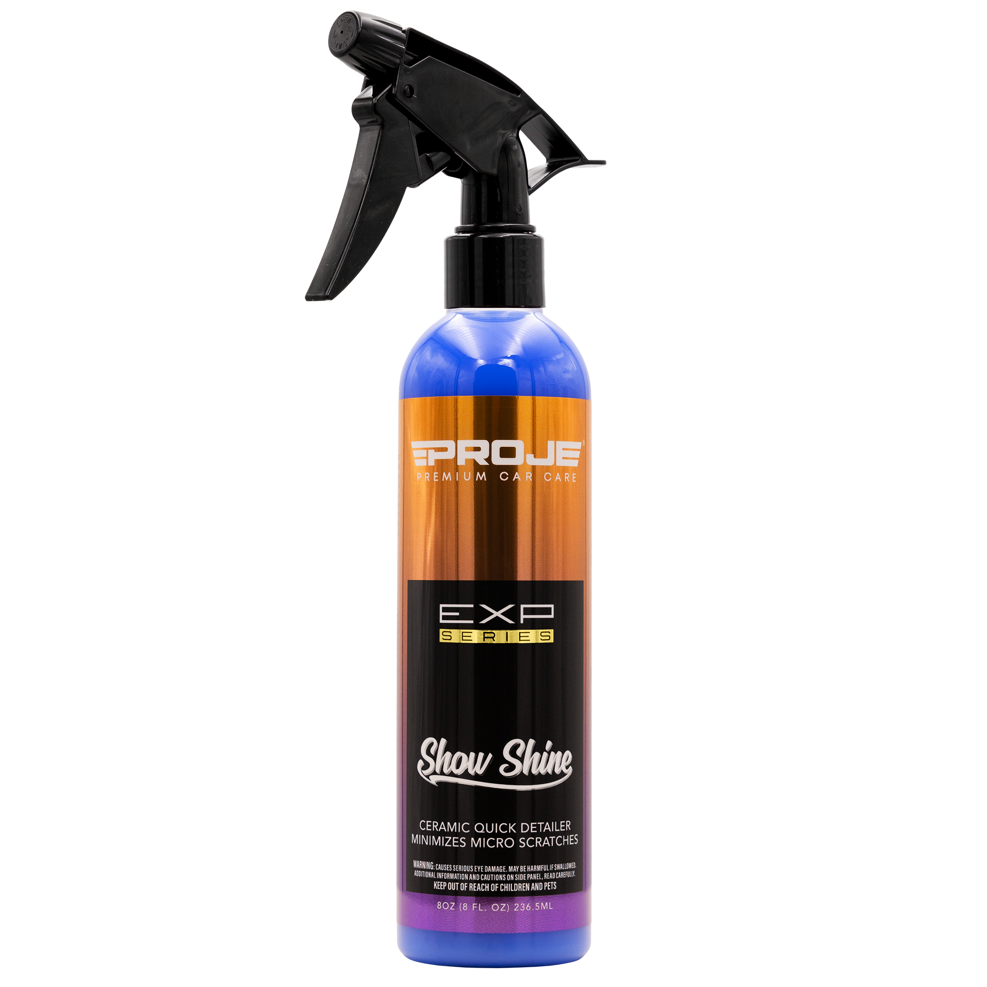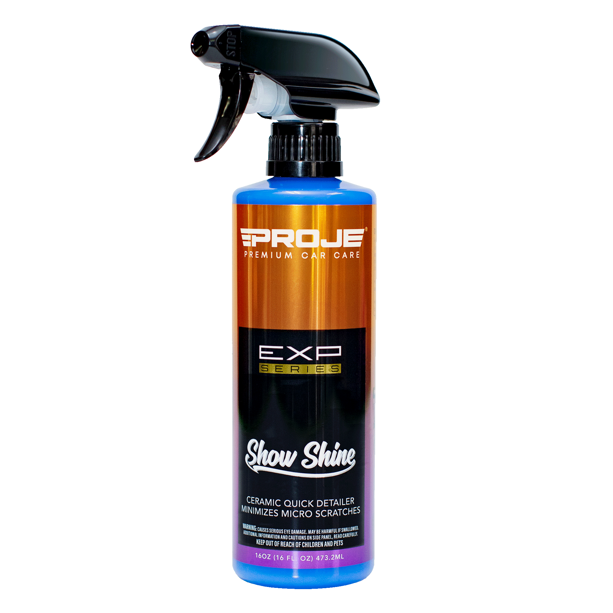 Proje’s Show Shine is a SiO2-infused ceramic quick detailer and ceramic booster that delivers a stunning mirror finish to your vehicle's paint. Formulated with advanced ceramic polymers and nano SiO2 particles, it provides a streak-free shine that enhances the depth and clarity of your vehicle’s surface. Ideal for maintaining your ceramic coating, Show Shine not only protects against environmental contaminants but also adds a brilliant showroom finish that lasts. Whether you’re prepping for a car show or simply want to elevate your daily drive, this detailer is the perfect solution for achieving a professional-grade appearance with minimal effort.Work in a Shaded Area - Park your vehicle in a shaded area ensuring the exterior surfaces are cool to the touch.