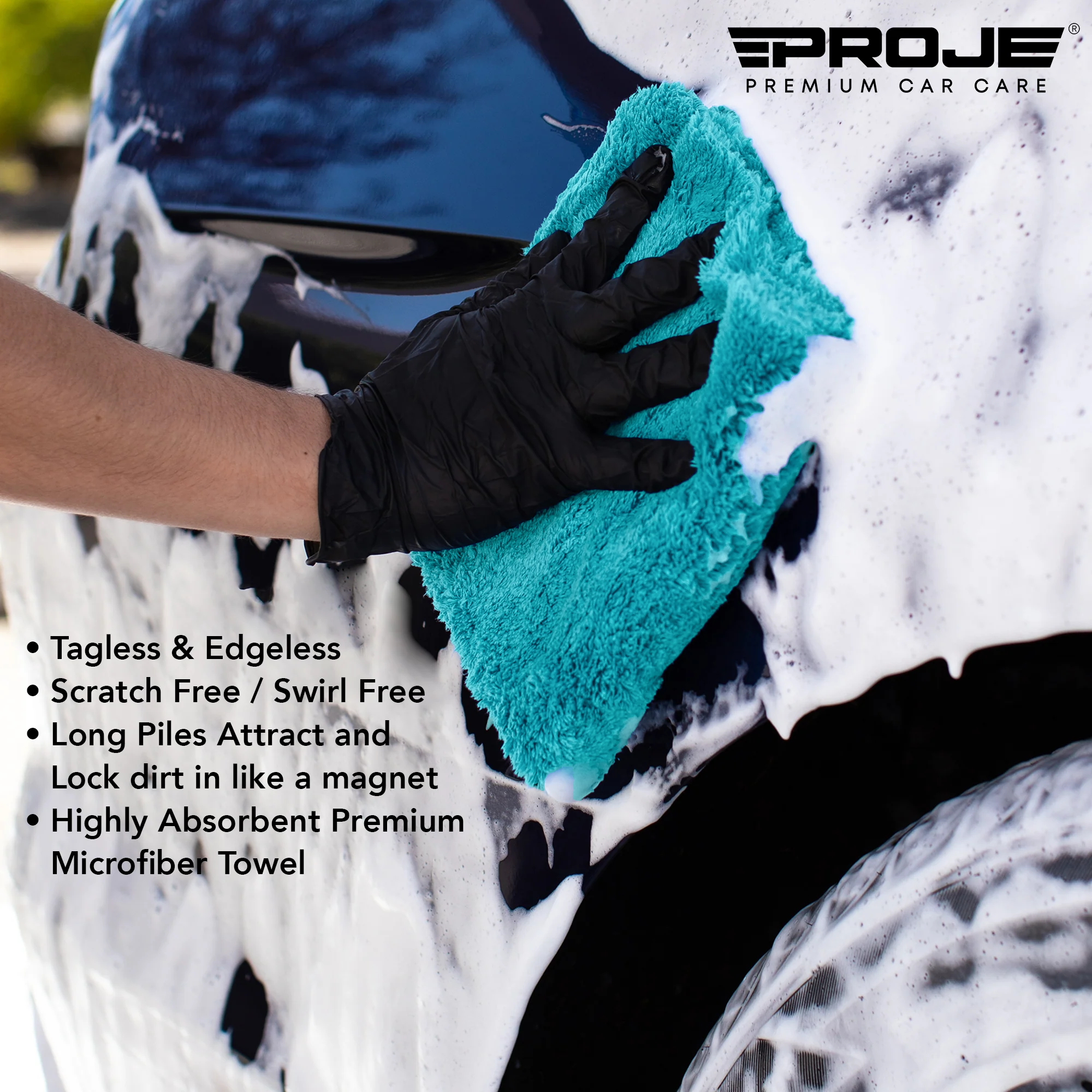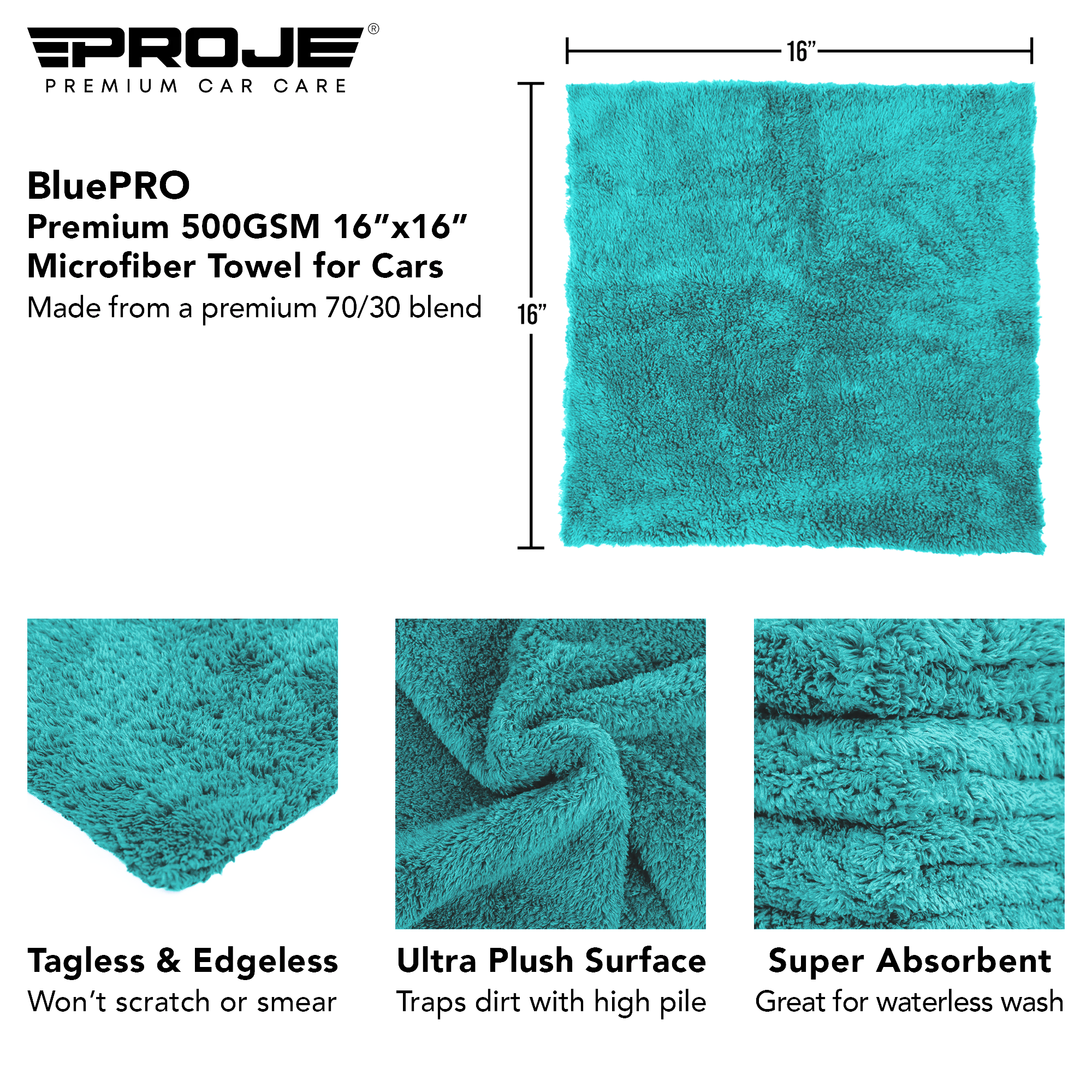 Proje’s professional grade plush microfiber towels are edgeless, tagless, and rated at a premium 500 GSM (Grams Per Square Meter). The ultra-soft and long pile non-abrasive microfiber cloths are super absorbent, thick, heavy-duty, durable, and scratch-free. Quickly and easily removes the residues of detailing sprays, waxes, compounds, and sealants. Magically lifts dust, dirt, and grime without leaving streak marks when using a Proje quick detailer or interior cleaner.