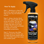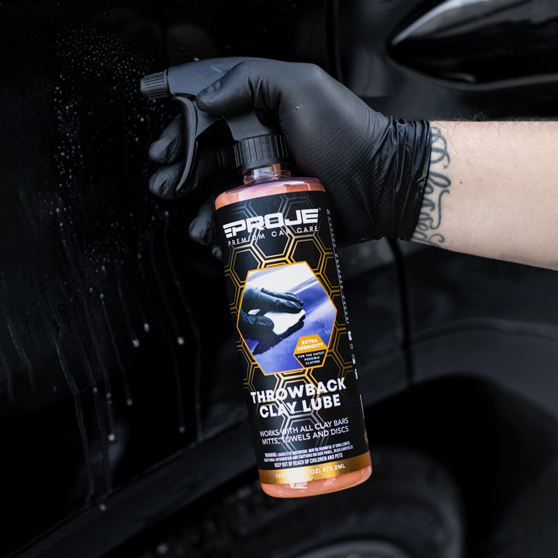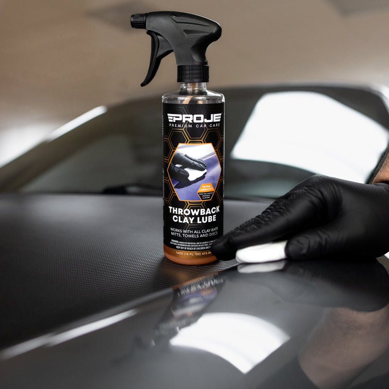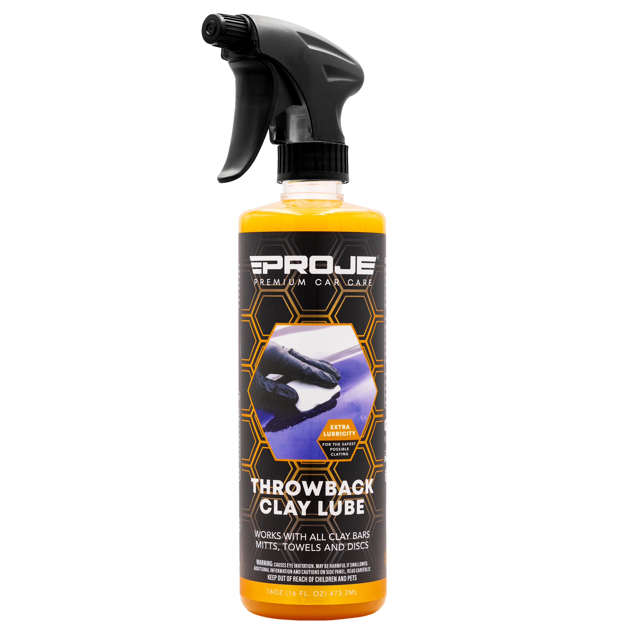 Proje's Throwback Clay Lube is specifically designed to work with clay bars, clay mitts, and clay discs. The detailing clay lubricant is highly effective and fast-acting, allowing your clay to gently glide over all surfaces, easily removing dirt, grime, and other embedded contaminants. Reduce the chances of scratching or marring your paint and extend the life of your clay with the lubricant spray to minimize friction between the clay and your vehicle. Help prep the surface for a paint correction to restore the smoothness and shine of your car's exterior surfaces, leaving it looking clean and refreshed in no time.Work in a Shaded Area - Park your vehicle in a shaded area ensuring the exterior surfaces are clean and cool to the touch.