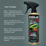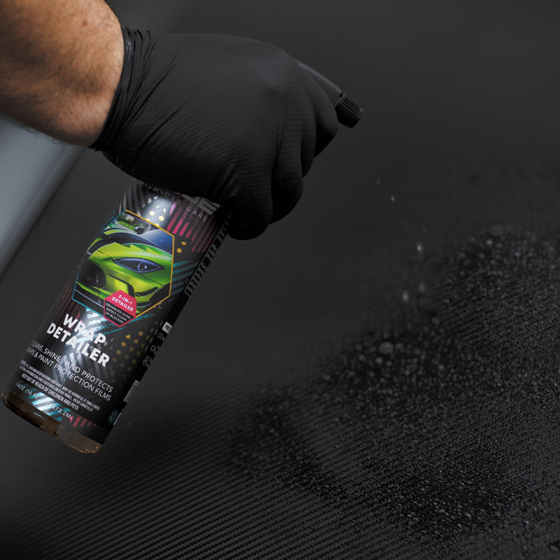 EASY TO USE WRAP QUICK DETAILER - The Easy to use spray and wipe formula allows you to clean and protect your wrap in no time. Simply Spray, allow the Wrap Detailer to encapsulate and lift the dirt from the surface, and wipe away with a clean microfiber towel.